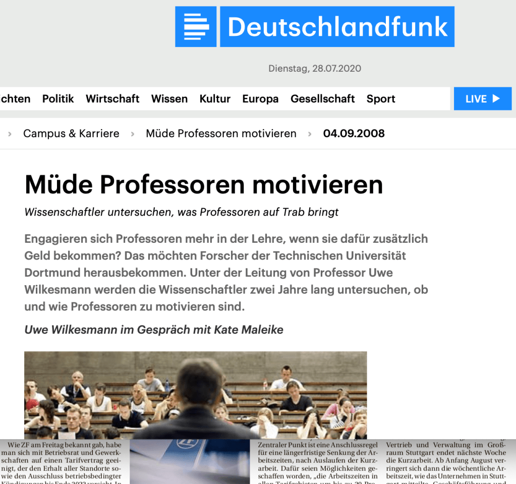 Maleike: Professor Uwe Wilkesmann, vielen Dank für das Gespräch. Die Dortmunder Forscher haben gerade ein Projekt gestartet, in dem sie herausfinden wollen, ob Professorinnen und Professoren sich mehr engagieren, wenn sie dafür Leistungsanreize bekommen.
